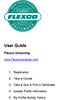 Training online with Flexco University provides a true learning experience, complete with photos, video clips and quizzes. To the left of the main slide view is a column with two tabs, allowing you to choose how you'd like to navigate the course material. Select a tab for one of the following options (from left to right):